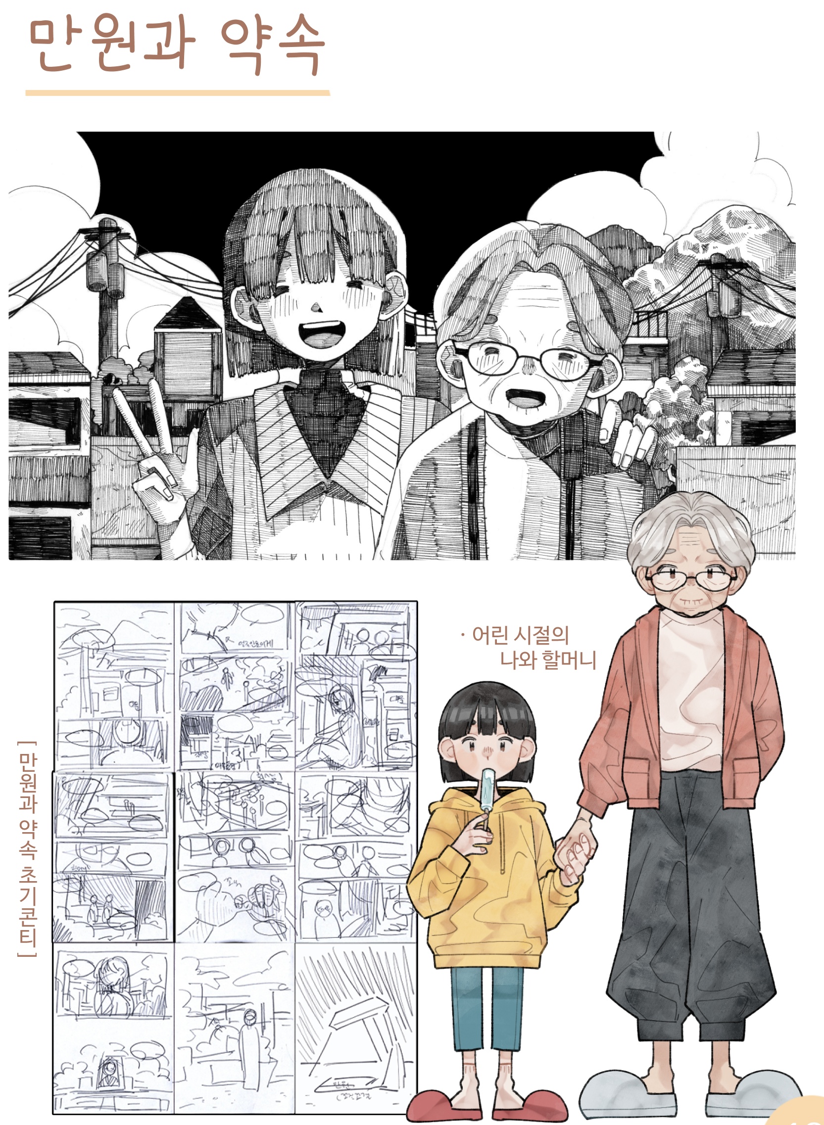 캐릭터 설정과 1차 콘티 그리고 샘플컷.