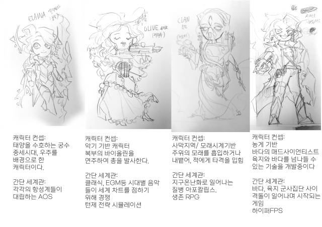 - 전체 스토리 분위기를 생각하면서 캐릭터를 구체화 한다.