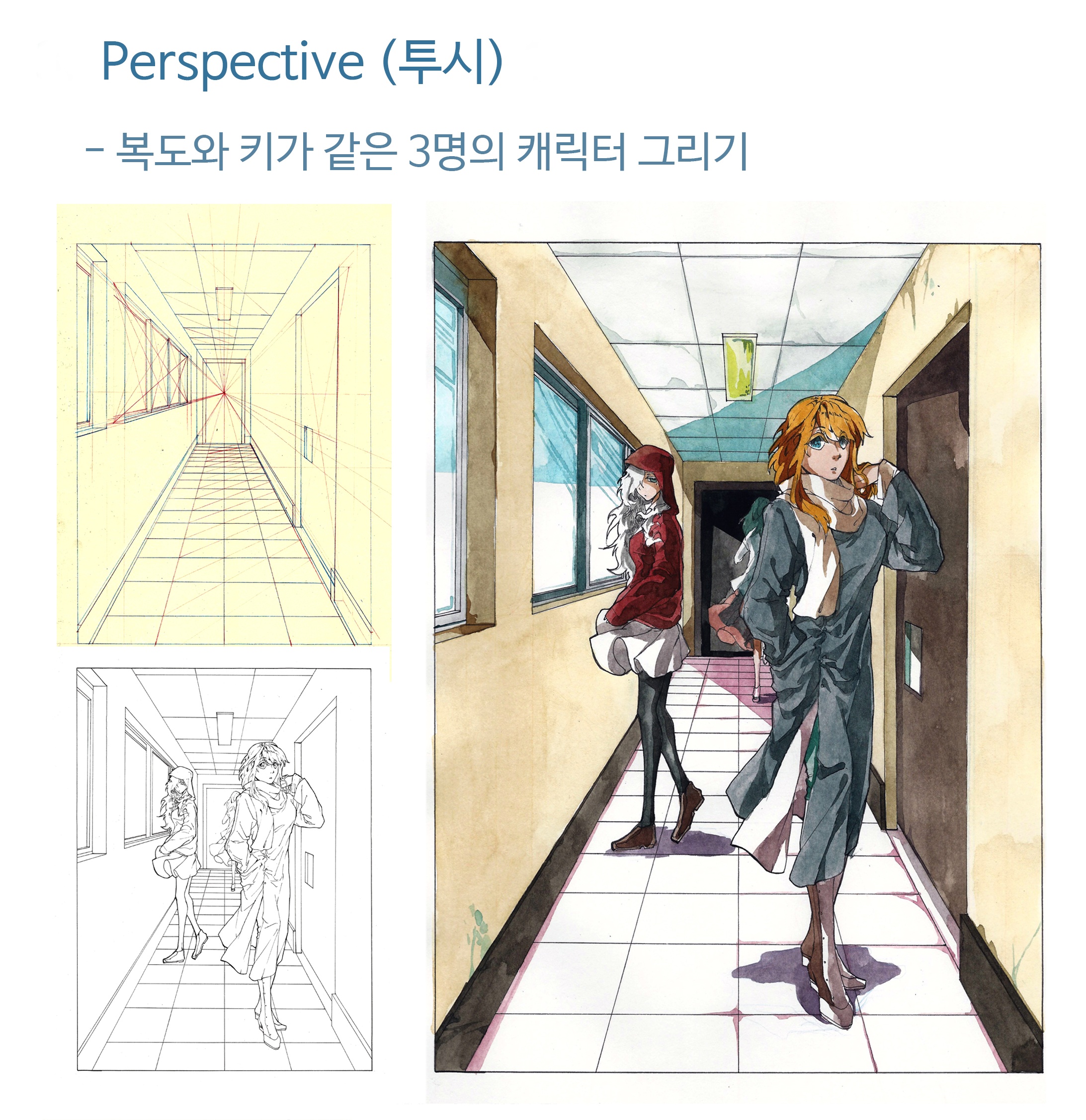 아래) 예비반 기초 투시 과정 입니다.