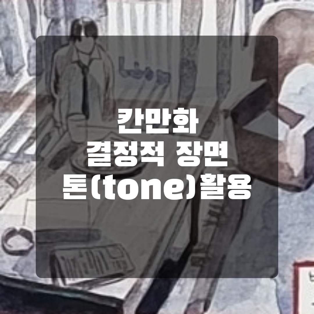 톤(tone) 참고 칸만화에서사실적 채색표현이 주는 현실감과 더불어분위기 전달이 필요하거나 정서적 요소를 강조하고자 할 때,톤(tone)을 활용 할 수 있다. 아래 그림들은 특정 분위기를 위한톤(tone) 연습이다. 화면에서 '강-중-약'의 조절을 통해창작자가 원하는 분위기를 만들 수 있다. 색 스케치(color script) - 컬러 톤(tone) 조절을 통해 분위기를 전달할 수 있다. 다음에는 톤(tone)을 활용한 칸만화 작품에 대해 알아보도록 하자.